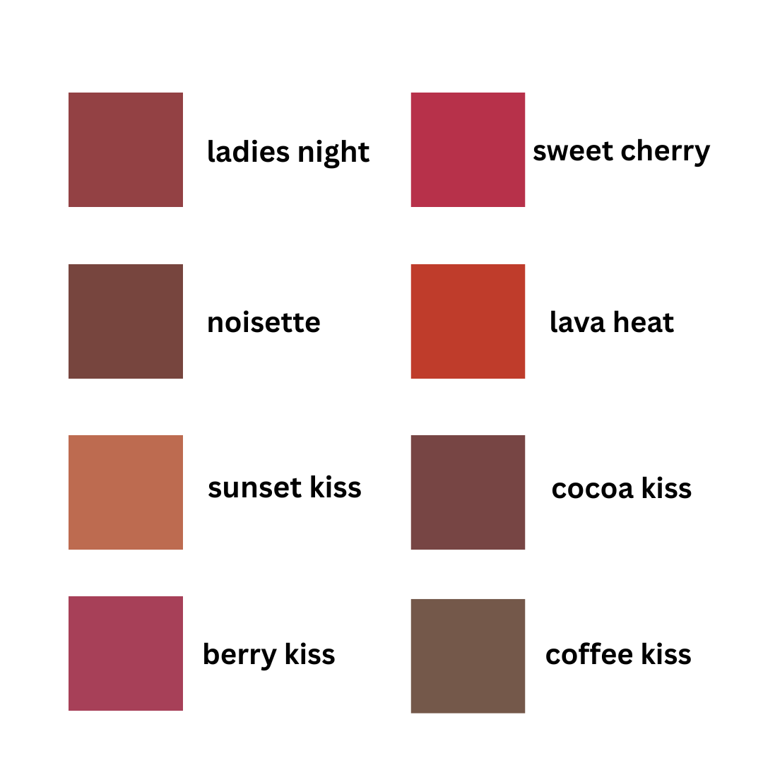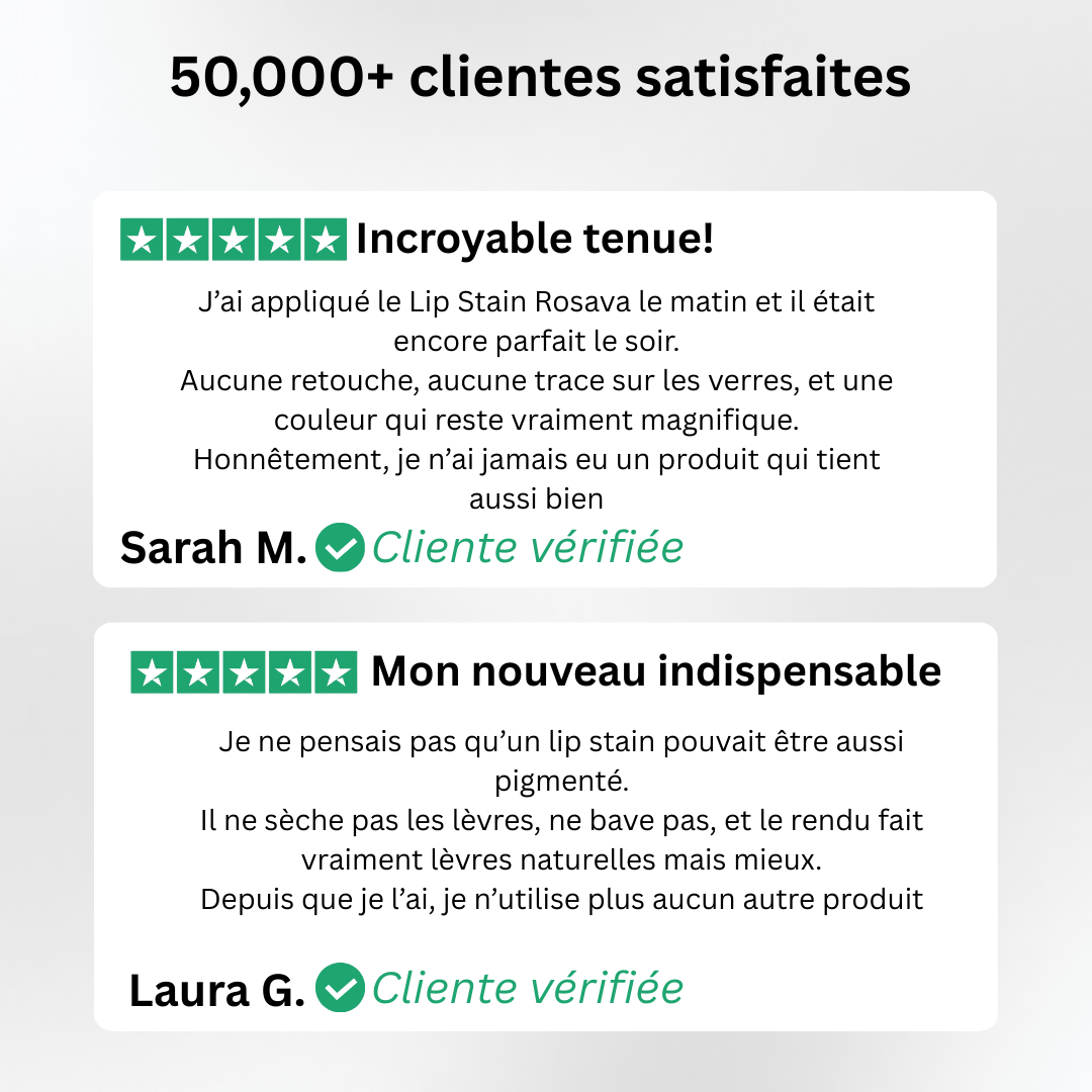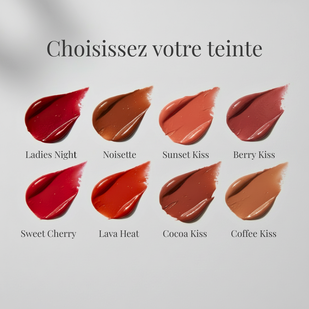 Nos teintes sont testées sur 4 teintes de lèvres différentes. Vous voyez exactement le rendu sur notre nuancier avant d'acheter